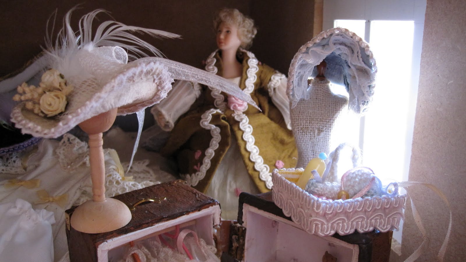Hoy, por casualidad, descubro tu blog y las maravillas que haces, el baúl es precioso y todas las minis colocadas a su alrededor magníficas.