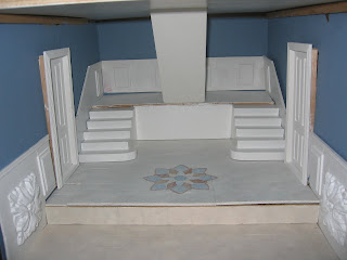 Del rosetón central bajará la lampara, que presidirá la entrada, también tengo que terminarla, ya que tengo que ponerle unos abalorios de cristal.